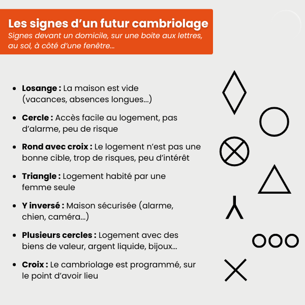 Une maison a été visitée à Saint-Planchers dans la nuit de jeudi à vendredi. La propriétaire nous a informés qu’il y avait des symboles de repérage à la craie. Soyez vigilants si vous remarquez ces signes :