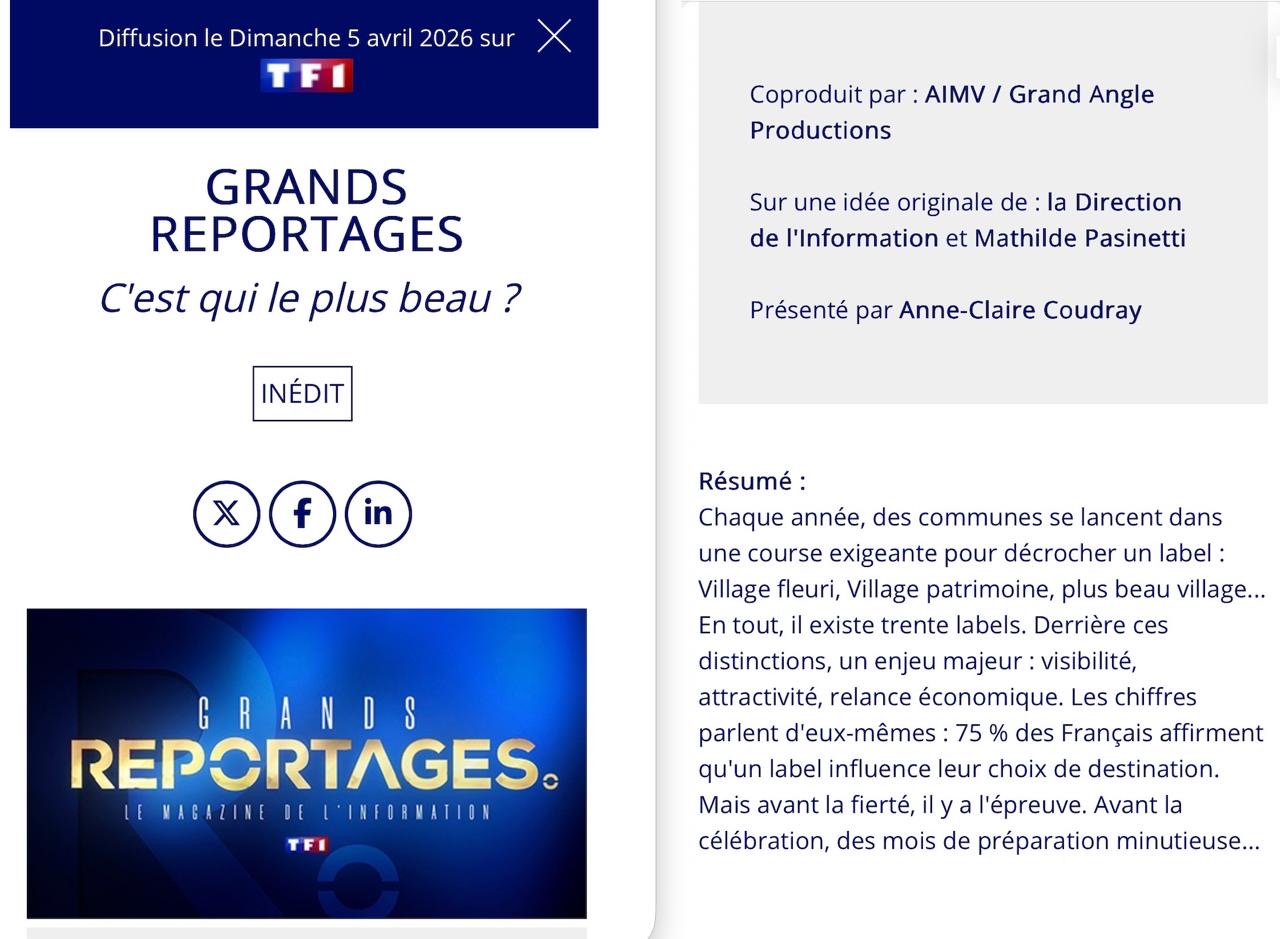 L’émission tournée par Tf1 en fin d’année dernière au Moulin de Vaucelles et la commune de Saint Jean des champs sur le thème des labels dont celui de “Villages patrimoines” est programmée le 5 avril Prochain sur TF1.